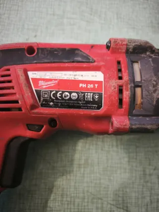Martillo combinado Milwaukee PH 26 T en color rojo y negro. Ideal para trabajos de construcción y bricolaje. - la función martillo no funciona. El resto perfecto. - Mango auxiliar para mayor control. - Cable de alimentación incluido.