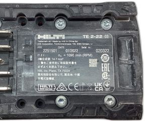 El precio mostrado es el de venta en nuestra tienda. El precio de este producto en nuestra página web puede ser diferente. Este artículo está disponible en nuestra tienda de Santa Coloma de Gramanet. martillo a bateria hilti te 2-22 CC069_E409928_0 es un objeto que se ofrece en estado correcto. Todos nuestros productos cuentan con garantía de 3 años y un plazo de devolución de 14 días. Marca: Hilti | Modelo: Te 2-22 | Bateria: Si | Voltios de tension: 18 | Amperios: 3.0 | Cargador: Si | Informacion adicional: Revisar imágenes para accesorios incluidos. revisar el estado de uso en las imágenes. producto con signos de uso | A