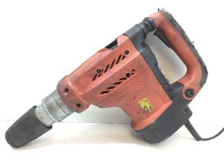 Martillo percutor Hilti de color rojo. Incluye un cincel. - Mango auxiliar. - Cable de alimentación. - Punta de acero incluida - Funciona perfectamente