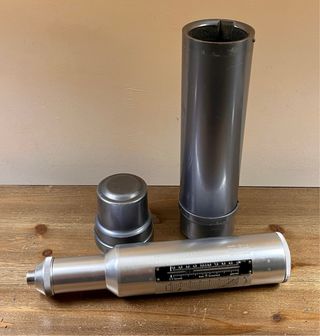 Esclerómetro o Martillo Schmidt modelo N-11 de E.O. Schmidt (Basel, Suiza). Se trata de un instrumento profesional para ensayos no destructivos de hormigón. Fabricado con cuerpo metálico calibrado, escala de rebote original y curvas de correlación impresas. Pieza técnica totalmente funcional, ideal también como objeto de colección industrial o ingeniería. Se entrega con su funda original. La primera imagen es una recreación digital y puede tener variaciones. Ver los detalles de la pieza en venta en las fotos siguientes.