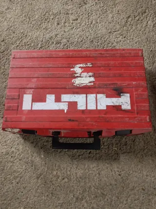 Caja de herramientas Hilti de color rojo. - De martillo perforador. - Medidas 60x40x14 - Diseño robusto con múltiples compartimentos. - Asa de transporte integrada.