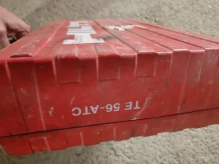 Martillo combinado HILTI TE 55 en su maletín. - Incluye maletín de transporte,1 Puntero y Cabezal para Brocas de Hierro. - Herramienta de color rojo y negro. - Brocas Pasamuros 50€ extra.
