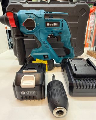 Martillo perforador a batería Seesii EH06P. A estrenar - Incluye maletín de transporte. - Dos baterías incluidas. - Cargador de batería. - Mango auxiliar. - Varilla de profundidad. Con Garantía Tienda T-locompro C/Nazaret 2 Fuenlabrada Madrid +info 919471850