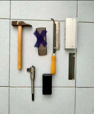 - Martillo 3€. - Sierra ingletera 9 € . - Barrena extensible para taladro eléctrico para hacer agujeros de 22 a 76 mm. en madera. Dispone de escala para la graduación de la medida 1 cuchilla de 22 a 40 mm. 1 cuchilla de 40 a 76 mm. Acer 6€. - Set de puntas de destornilladores 3€. * Todas 18 €* * ver fotos individuales "Antes de tramitar la compra comuníquese conmigo para ver si puedo entregar o enviar
