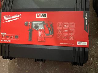 Martillo rotativo Milwaukee M18 BLHX. - Incluye 2 batería REDLITHIUM 5.0 Ah. - Capacidad de perforación de 28 mm. - Motor Brushless. - Peso: 3.7 kg.