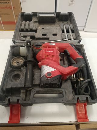 Se vende martillo perforador de la marca Einhell, en color rojo y gris, con su maletín de transporte. - Incluye cincel. - Cable de alimentación.