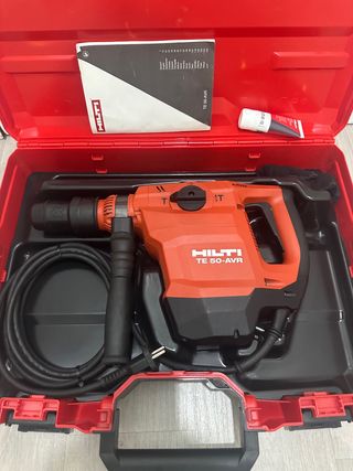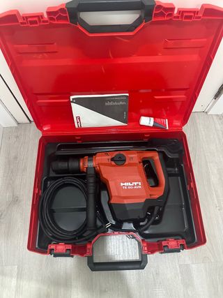 Martillo demoledor Hilti TE 50-AVR en su maletín con muy poco usó,funciona perfectamente está como nuevo. - Incluye manual de instrucciones. - Incluye tubo de grasa. - Cable de alimentación.