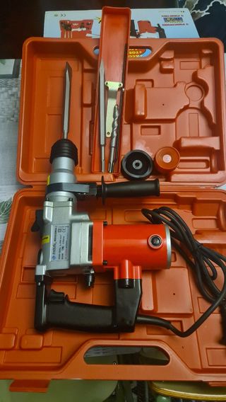 Martillo demoledor eléctrico de 1650W, ideal para trabajos de demolición. Nuevo a estrenar - Incluye maletín para transporte. - Viene con dos cinceles (uno plano y uno puntiagudo). - Incluye accesorios y manual. -hacemos envio a toda España para mas informacion 📞 651789993
