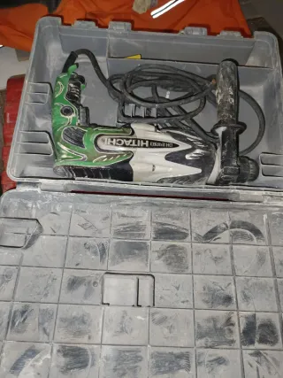 Martillo taladro Hitachi en su maletín. - Incluye maletín de transporte. - Mango auxiliar para mejor agarre. Es perfecto estad
