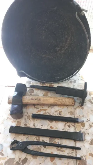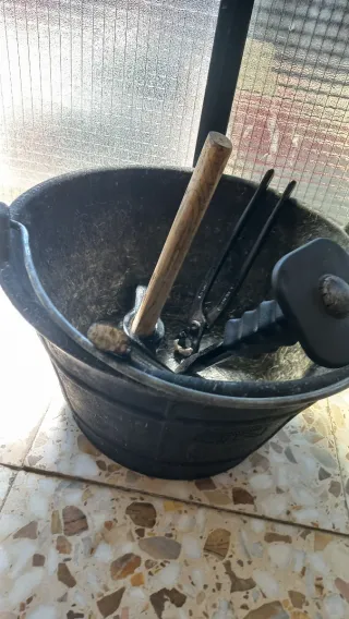 Conjunto de herramientas para reformas con un cubo. - Incluye martillo, cortafrios y ... - Cubo de goma negro.