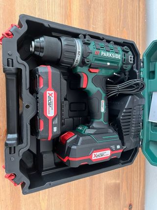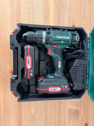 Atornilladora taladradora recargable Parkside 20V NUEVA A ESTRENAR INCLUYE 1 CARGADOR 2.4A y 2 BATERIA 2AH Velocidad de giro en vacio: primera marcha 430rpm segunda marcha 1500rpm Incluye maletin Envios a traves de Wallapop automóvil bosch, parkside, madera, hierro, cuchillas, bricolaje, DeWalt, Stayer, Black Decker, Worx, Lidl, circular, amoladora, taladro, radial, atornillador, martillo, lijadora, laser, impacto, 4 ah, jardin, cortacesped, piscina, rama, árbol, cortasetos, cesped, cargador, lidl, batería, 2 ah, taladradora, martillo, soplahojas Tag: bosch, parkside, madera, hierro, cuchillas, bricolaje, DeWalt, Stayer