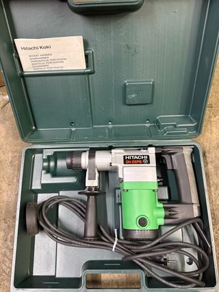 Martillo rotativo Hitachi DH 25PB en su maletín original. - Incluye manual de instrucciones. - Color verde y gris.