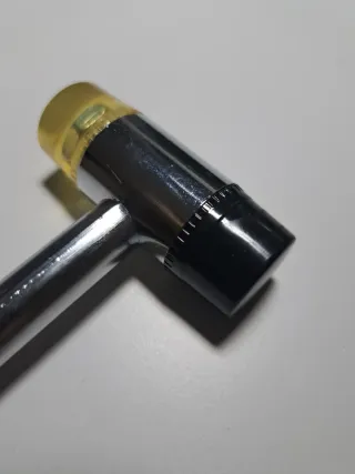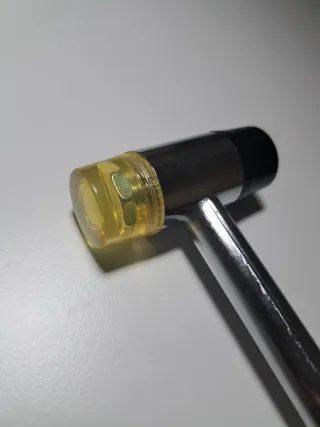Martillo con cabeza de silicona para evitar marcas. - Mango metálico cromado. - Cabeza de silicona amarilla.