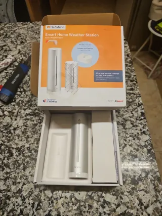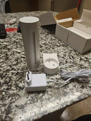 Módulo interior para estación meteorológica Netatmo. Este dispositivo complementa tu estación principal para obtener mediciones más precisas en tu hogar. - Solo la unidad interior. - Diseño cilíndrico blanco. - Incluye base de montaje. - Adaptador de corriente y cable.