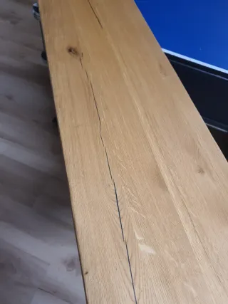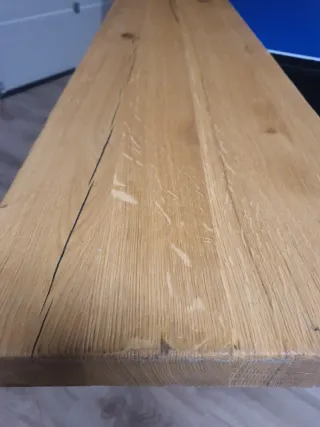 Barra de madera de roble con un diseño rústico y natural. - Material: Madera de roble. - Acabado: Natural con vetas marcadas.