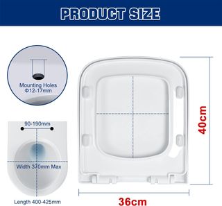 Tapa de WC con diseño D-Shaped, compatible con la mayoría de inodoros. Tapa WC Universal Forma de D [LARGO], YEAUPE PRO Asiento de Inodoro de Cierre Suave con Liberación Rápida para una Fácil Limpieza, Blanco, 45 x 36,1 x 5cm, Incluye plantilla de instalación - Forma D-Shaped. - Medidas aproximadas: Ancho 35.6-36.6cm, Largo 40.5-46.5cm. - Distancia entre orificios de montaje: 13-25cm. 50650250
