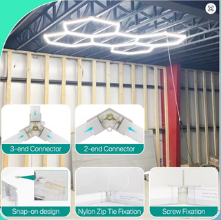 Panel de luz LED con diseño moderno de panal. - Estructura hexagonal. - Acabado blanco.