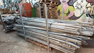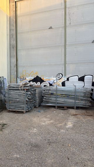 Se venden barandillas quitamiedo de andamio en muy buen estado. Balustres y sargentos Precio: 6 € por unidad. Hasta agotar existencias. Material resistente y en perfecto uso, ideal para andamios de obra, reformas o alquiler de equipos. Disponibles para recogida inmediata - Material: Metal galvanizado.