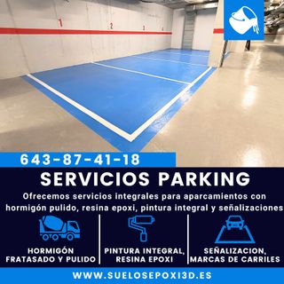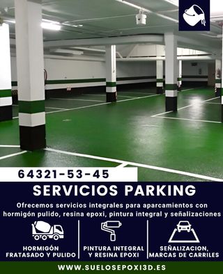 🌟 ¡Renueva tu aparcamiento, garaje o taller!🌟 ¡Llámanos y mejora tu espacio con acabados de alta calidad y soluciones personalizadas! 📞 64321-53-45 ✨ Ofrecemos: -Señalizaciónes, pintura logotipos, pintura acceso discapacitados, líneas, flechas, stop; -Hormigón fratasado, pulido y impreso -Pintura integral para fachadas, techos, paredes, pilares y elementos metálicos. - Resina epoxi, poliuretano (autonivelante, antideslizante, multicapa) 📋 Ofrecemos garantía, facturas y formalizamos un contrato de obra asegurando así la transparencia! 🔧Calidad garantizada! ✉️ Correo: contacto@suelosepoxi3d.es 🔎 WB:suelosepoxi3d.es
