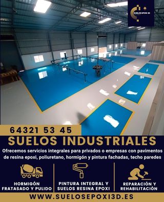 🌟 ¡Transforma tu nave industrial! 🌟 📋 Ofrecemos garantía, facturas y formalizamos un contrato de obra asegurando así la transparencia! 📞 64321-53-45 ✉️ Correo: contacto@suelosepoxi3d.es 🔎 WB:suelosepoxi3d.es Te ofrecemos un servicio completo especializado para almacenes, naves. Nos dedicamos a: -Hormigón fratasado, pulido y impreso -Pintura integral: techos, paredes, pilares y fachadas -Pintura resina epoxi, resina epoxi multicapa y autonivelante -Señalización y marcajes 🔧 Nos enfocamos exclusivamente en naves industriales y espacios comerciales, brindando un servicio adaptado a las necesidades de tu empresa. ¡Contáctanos ya!