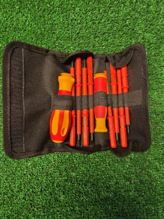 Estuche con juego de destornilladores aislados, ideal para trabajos eléctricos. Incluye un destornillador de voltaje. - Mango ergonómico de dos materiales. - Incluye estuche organizador.