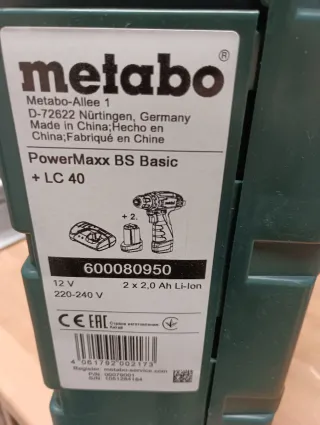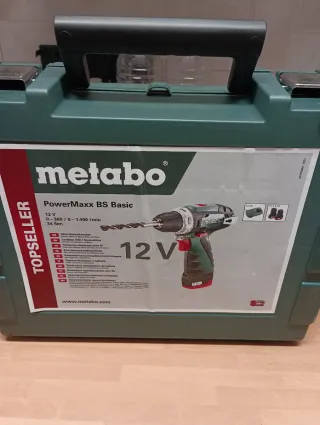 Taladro atornillador Metabo PowerMaxx BS Basic. - Voltaje: 12 V - Velocidad: 0-360 / 0-1.400 rpm - Par de giro: 34 Nm