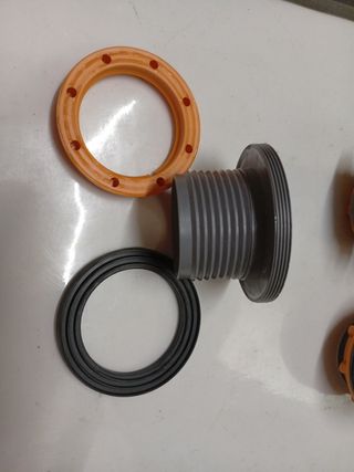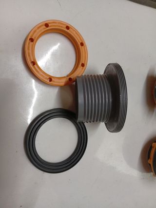 Conjunto de desagüe para cisterna, Nueva Incluye una pieza gris, una anilla naranja y una junta de goma. - Ideal para reparación o instalación. - Fácil de instalar. - Piezas en perfecto estado. Para todo tipo descarga roca y universal todos los modelos Se sujeta en el inodoro WC en mi perfil material ferretería liquidación stock PVC tornillos válvulas desagues válvula descarga manetas pomos tiradores asa herramientas tubos cable tornillos mecanismos cerradura seguridad cerraduras puerta y persiana Material eléctrico SIMON eunea NIESSEN FONTINI