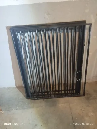 Conjunto de rejas metálicas negras para chimenea. Son robustas y de diseño clásico. - Material: Metal. - Color: Negro. - Diseño: Barras verticales. 4 pliegos , dos de ellos se abren y sirven de puerta con pestillo de seguridad. Medidas de cada pliego: 80cm de alto * 76 cm de ancho.