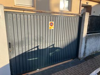 Puerta de garaje metálica de color blanco. - Apertura manual. - puerta pequeña para entrada peatonal - se vende por poner puerta automática En venta hasta que se cambie la puerta.