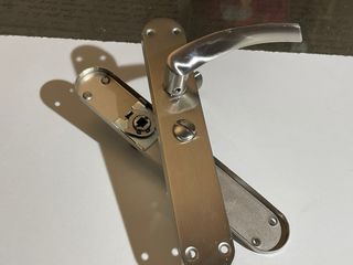 Juego de picaportes para cerradura de puerta, fabricados en acero inoxidable. El diseño es moderno y elegante, ideal para dar un toque de distinción a cualquier puerta. - Material: Acero inoxidable. - Acabado cepillado. - Incluye dos picaportes y sus placas. Se compró por error y al romper la caja no pude descambiarlo. Maneta para puerta . Manilla de puerta