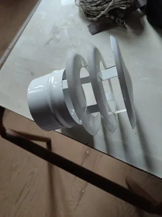 Sombrerete-gorro de ventilación de color blanco. Su diseño cuenta con varias aletas circulares. Para tubo de 100, calentadores o calderas, salida de humos - Material: Plástico. - Color: Blanco. - Diseño: Aletas circulares.