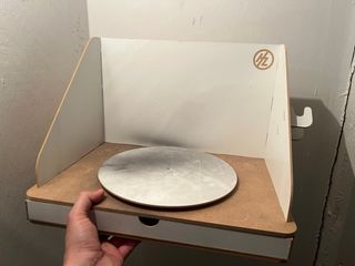 Estación de pintura con base giratoria. - Base giratoria para facilitar el pintado. - Estructura de cabina para contener salpicaduras. - soporte de aerógrafo en el lateral - Tiene un cajon debajo para guardar los utensilios Solo lo usé una vez