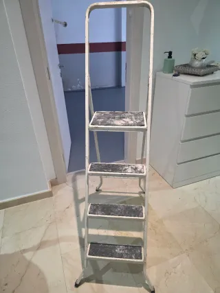 Escalera plegable de 4 peldaños, ideal para tener en casa. - Estructura hierro - Peldaños con superficie antideslizante. _ medida altura kltimo escalón 90 cm Alto total 1,48 cm