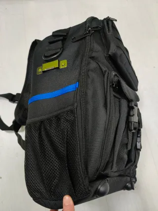 Mochila de herramientas en color negro, con un diseño práctico y resistente. Está totalmente nueva a estrenar. Me regalaron dos iguales. En su embalaje original. - Compartimentos múltiples para organización. - Cierres de hebilla frontales. - Material textil duradero. - Base de apoyo para evitar daños y que sea más cómoda.