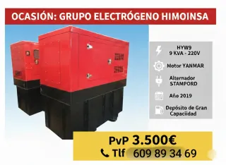 Grupo electrógeno HIMOINSA en perfecto estado. - Modelo: HYW9 - Potencia: 9 KVA - 220V - Motor: YANMAR 1500rpm - Alternador: STAMFORD - Año: 2019 - Depósito de gran capacidad - Precio: 3.500€ - Contacto: 609 89 34 69 #himoinsa #gesan #pramac #generador #energia #luz #redelectrica