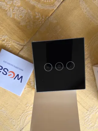 Interruptor / regulador táctil de cristal negro marca WESA. Diseño moderno con panel de vidrio y control táctil con LED. Ideal para viviendas modernas o reformas. Nuevo / sin uso (o especifica estado real). Incluye material de montaje.