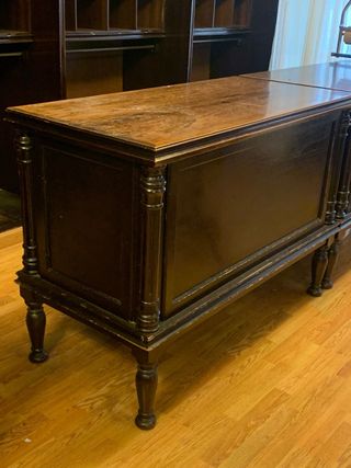Se venden 5 mostradores de madera oscura con patas torneadas. - Diseño clásico y elegante. - Acabado en madera oscura.