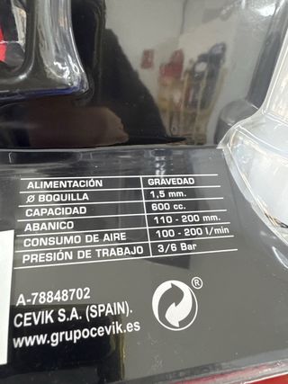 Pistola de pintar profesional Cevik Pro con depósito inferior. - Modelo: Pistola de pintar depósito inferior. - Capacidad del depósito: 750cc. - Boquilla: 1.4mm.