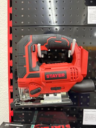 Caladora inalámbrica de 18V, ideal para trabajos de corte. Incluye batería y cargador para que puedas empezar a usarla de inmediato. - Diseño ergonómico para un mejor agarre. - Base ajustable para cortes en ángulo.