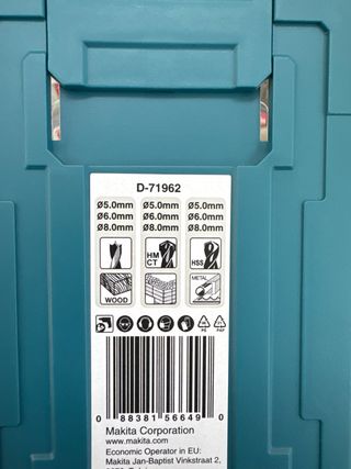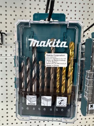 Set de brocas de la marca Makita, diseñado para trabajos en madera y metal. Incluye brocas de diferentes tamaños. - Brocas para madera. - Brocas para metal. -Brocas para hormigon - Tamaños: 5, 6, 8 mm.