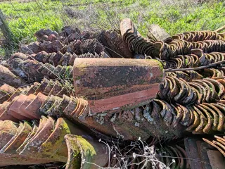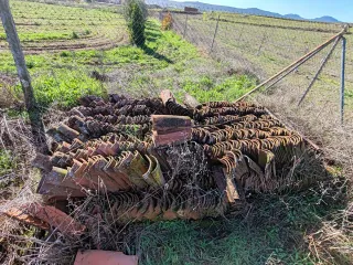 Lote de tejas árabes antiguas, ideales para proyectos de restauración o construcción rústica. - Material: Cerámica. - Color: Rojo terracota. - Diseño: Curvo tradicional.