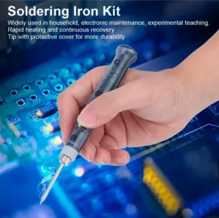Soldador de estaño con alimentación de 5V. - Ampliamente utilizado en el hogar, mantenimiento electrónico y enseñanza experimental. - Calentamiento rápido y recuperación continua. - Punta con cubierta protectora para mayor durabilidad.