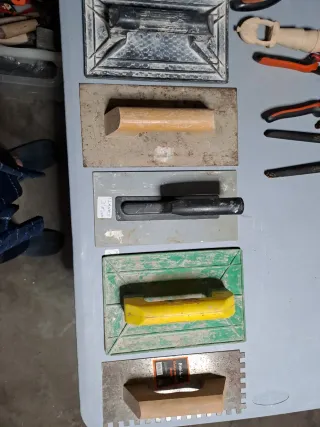 Se vende lote de herramientas y accesorios variadas, ideal para trabajos de bricolaje o profesionales. Están en perfecto estado de uso. Cada una tiene su precio, la compra mínima es de diez euros. Las que no tienen precio a un euro. - Niveles de burbuja (amarillo y plateado) - Sierras (una grande y una pequeña) - Hachas - Martillos - Llaves inglesas - Pistola de silicona - Cinceles - Paletas - Otros accesorios de mano