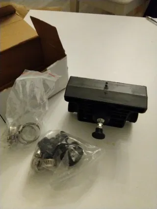 Juego de mini bomba compatible con taladros eléctricos. Incluye accesorios para su instalación. - Bomba de plástico negro. - Mangueras y abrazaderas metálicas.