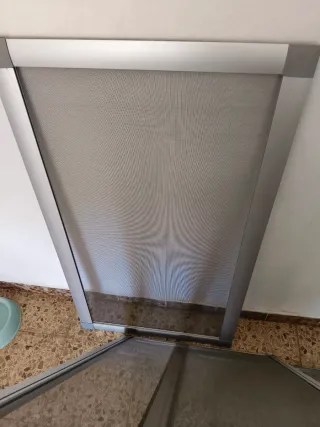 Mosquitera plegable de diseño moderno. - Material: Aluminio y malla. - Color: Marrón y gris. - Tipo: Plegable. Cualquier duda contactar al 624136706 a la atención de Antonio, se encuentra en Calicanto ( Torrente )