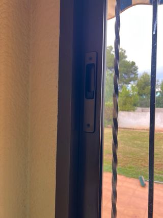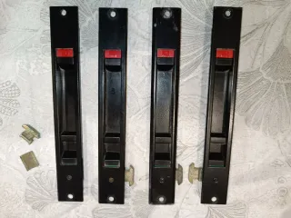 Cierre de seguridad para ventanas correderas. - Mecanismo de bloqueo. - Material de metal. - Dimensiones: 174 mm de largo, 24 mm de ancho, 14,3 mm de alto. 3 unidades en perfectas condiciones 1 con el gancho roto Se venden las 4 unidades juntas por 10€