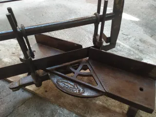 Herramienta manual para cortes precisos en marquetería. - Construcción robusta de hierro fundido. - Guías para cortes angulares. - Base estable para trabajar.