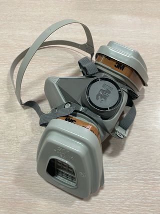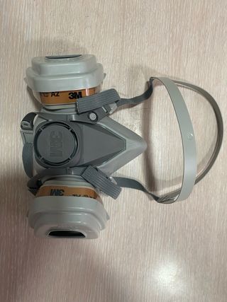 Máscara (NUEVA,NUNCA SE A USADO) de protección facial de la marca 3M, diseñada para ofrecer seguridad. - Color gris. - Fabricada en plástico resistente. - Incluye correas ajustables para la cabeza.