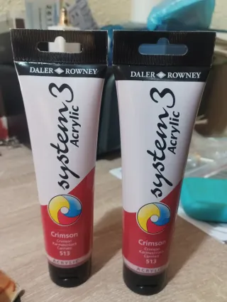2 Tubos de pintura acrílica Daler Rowney System3 Crimson. - Color: Carmesí (513). - Acabado: Mate. - Volumen: 150 ml (5.1 fl oz).