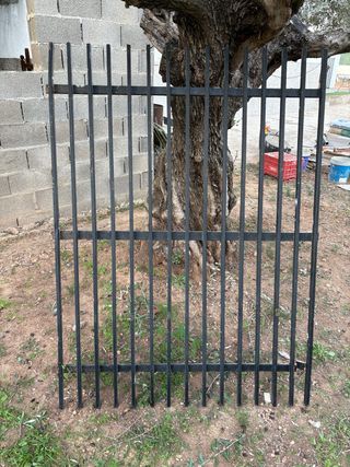 Reja de seguridad para puerta, fabricada en metal resistente y con un diseño elegante. - Incluye marco. - Dispone de cerradura. - Barras verticales con detalles decorativos. Cualquier duda contactar al 624136706 a la atención de Antonio, se encuentra en Calicanto ( Torrente )
